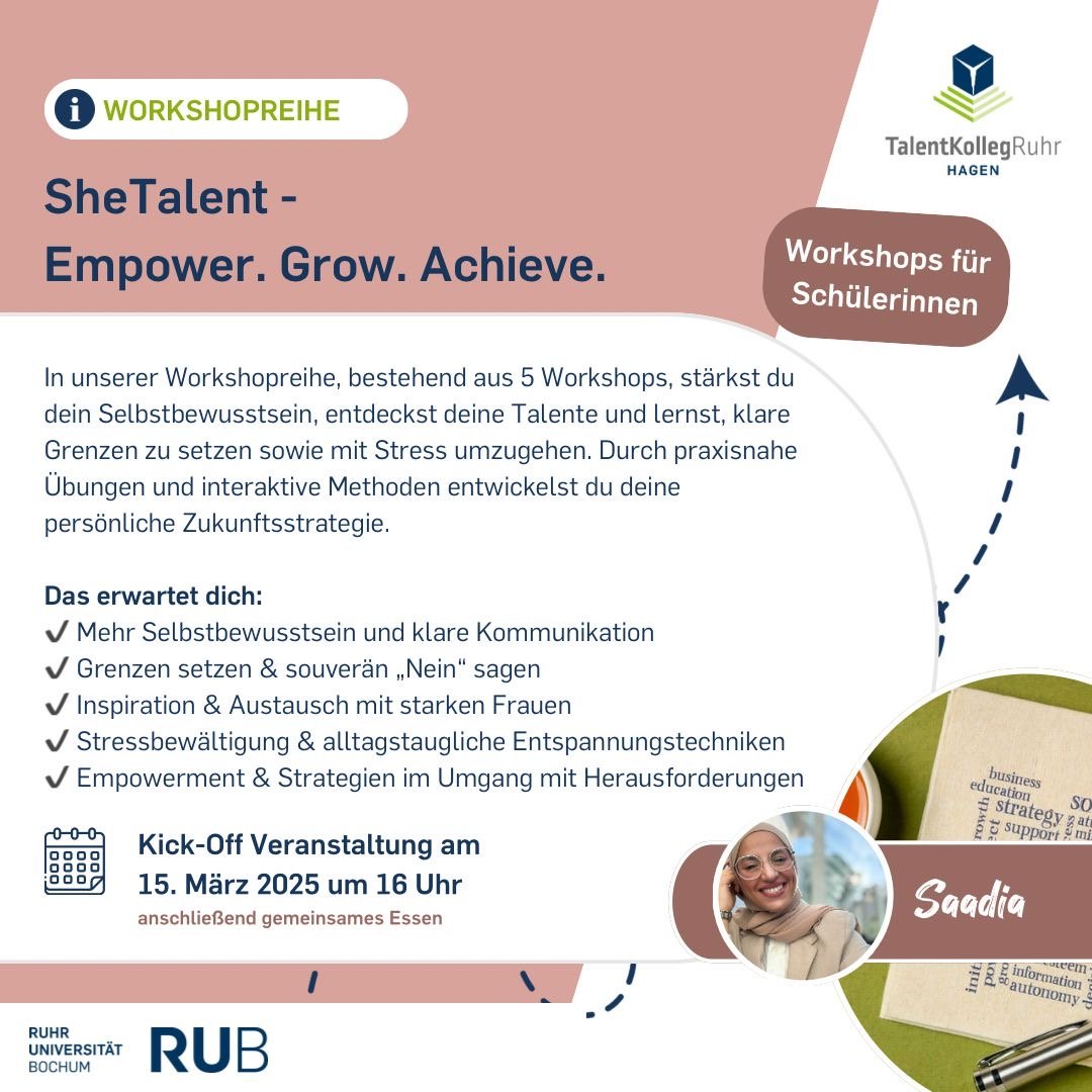 Wenn du dich darüber hinaus weiterentwickeln, neue Leute kennenlernen und dich gezielt auf Studium oder Ausbildung vorbereiten möchtest, lohnt sich ein Blick auf das TalentKolleg Ruhr Hagen. Dort erwarten dich spannende Workshops, Freizeitangebote und Qualifizierungskurse - kostenfrei und schon während der Schulzeit.
